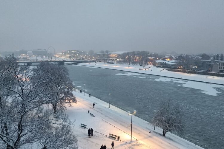 Krakau heeft zich vandaag opnieuw van haar sprookjeskant laten zien: de Wisła ligt half bevroren, de stad draagt een dik wit tapijt, en de locals wandelen er doodleuk doorheen alsof het de normaalste zaak van de wereld is.