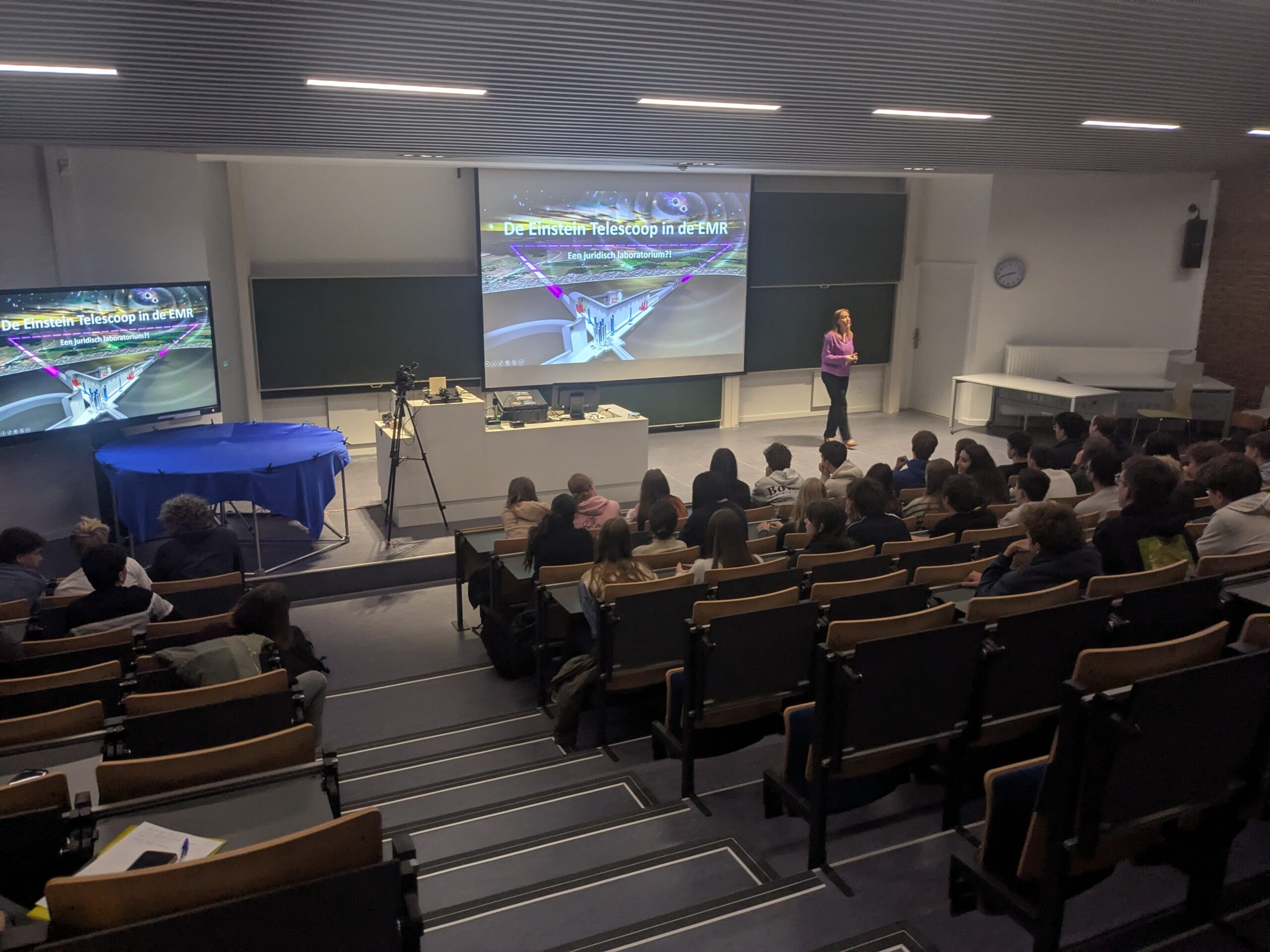 Iedereen kent waarschijnlijk CERN in Zwitserland, maar wist je dat er mogelijks een gelijkaardig project in onze achtertuin gebouwd zal worden? Over deze zogenaamde Einstein Telescoop kregen de leerlingen van het zesde jaar wetenschappen uitleg aan de UHasselt op 13 november. Ze leerden niet alleen de fysica achter dit project, maar ook hoe zo een zwaartekrachtsgolf "klinkt" alsook de economische en juridische impact die dit project kan hebben. Wil je er zelf trouwens meer over weten, dan kan je luisteren naar de podcast Einstein Telescoop: ET voor de vrienden.